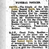 ChildrenThree children, Mary Smith and Alfred SMITH, both stillborn in 1911; this child is buried with him in the Boulder Cemetery, and a third not named