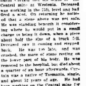 Fractured pelvis, ruptured bladder, caused by a falling slab..