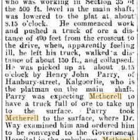 After pushing a truck of ore 400ft, Metherell collapsed from exhaustion. Taken to the surface, he died an hour later in hospital.