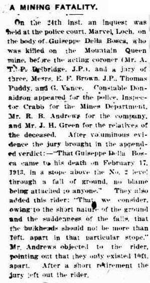 My great uncle, Giuseppe Della Bosca, died in a fall of earth in the Mountain Queen Gold Mine near Marvel Loch on 17 February 1913. He is buried in the cemetery there. We visited it in September; such a desolate, isolated place for a young boy from the other side of the world. He had arrived in WA two years earlier, as an 18 year old, from his small village in the Italian Alps. What a contrast he must have found here. Apparently, his was the first death in this mine. Adding to the tragedy of his death for his family, my grandfather, a 17 year old, was on his way to join his older brother, when the accident occurred. He arrived on 1 April 1913, with no English, a gold sovereign his father had given him, and no one to meet him.