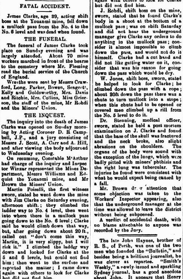 Fell down mullock pass from No. 4 to No. 6 level.