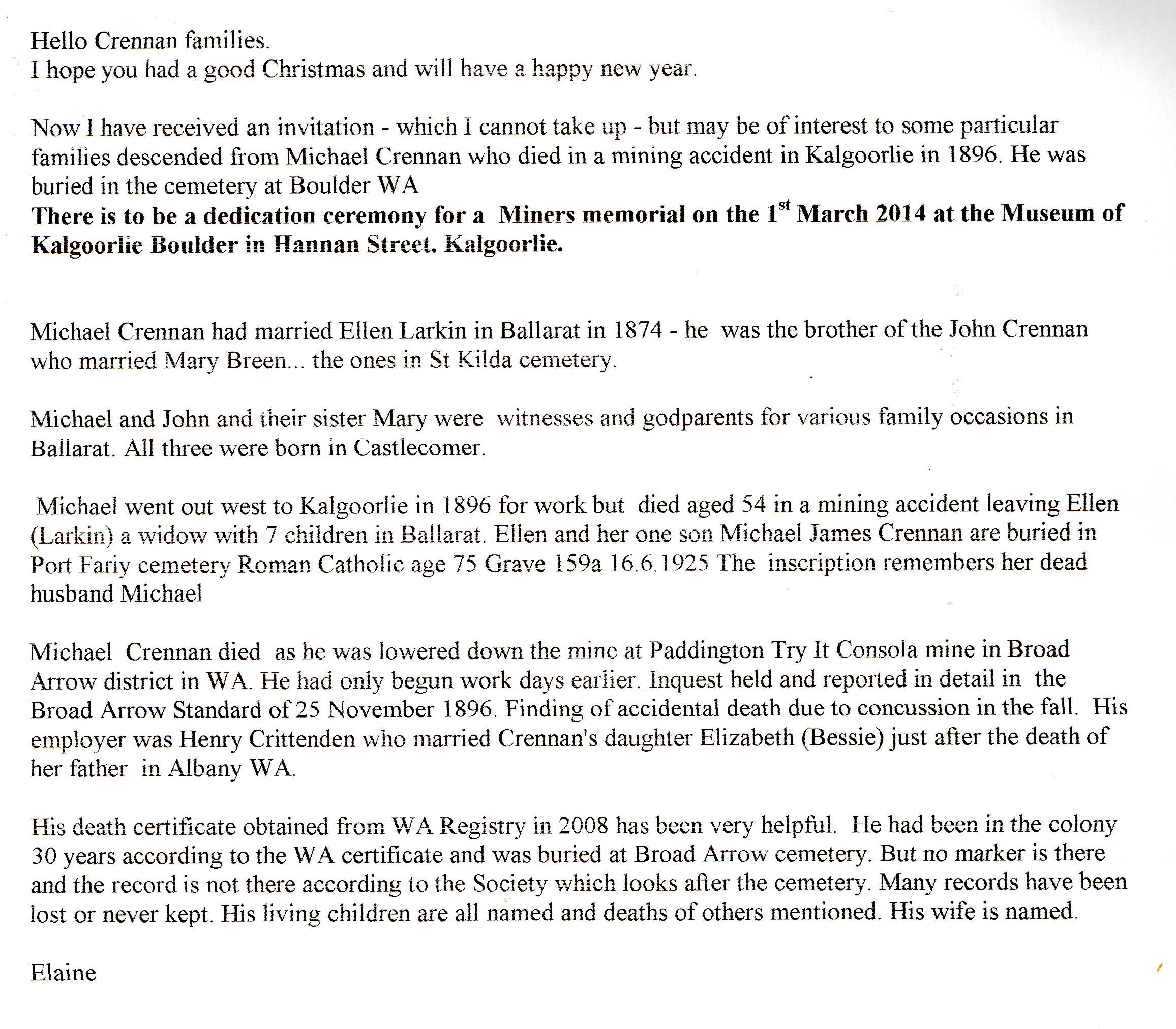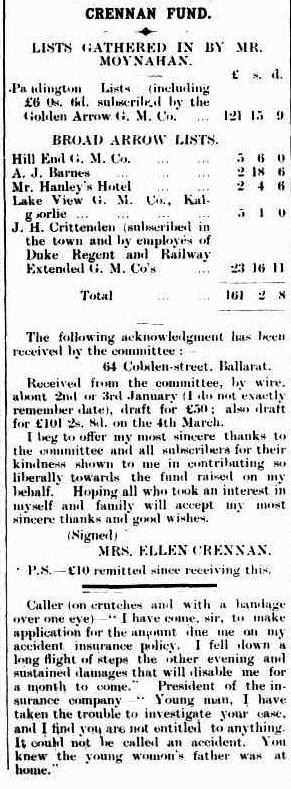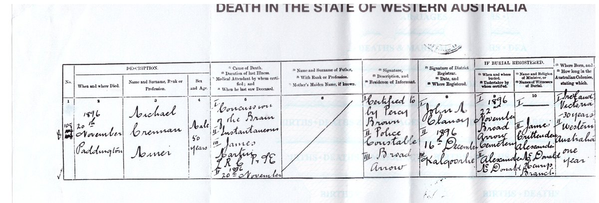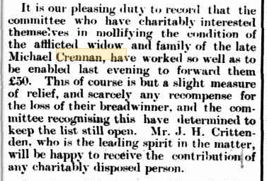 Inquest - https://trove.nla.gov.au/newspaper/article/226222540?searchTerm=%22Michael%20Crennan%22