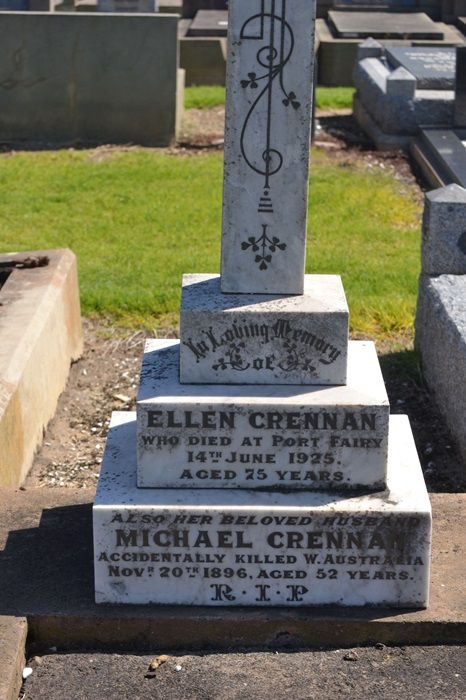 Grave of Ellen Crennan in the Port Fairy Cemetery, Victoria also commemorates Michael Photo Find a Grave