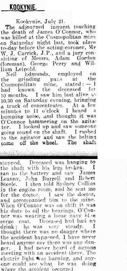 • Inquest Page 2:- Kalgoorlie Miner, Thursday 23 July 1908, page 2