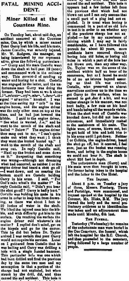 Fracture of skull caused by accidental explosion at Countess GM, Cue.