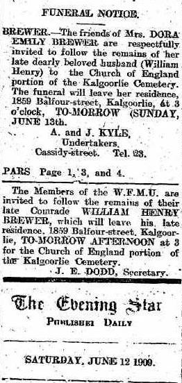 Date Of Death11 June 1909 : Reg 97/1909 East Coolgardie (Kalgoorlie)