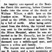 WILSON. — On September 16th, killed in Ivanhoe Mine, William Reuben, the dearly beloved husband of Jane Victoria Wilson, and only son of Andrew and Mary Wilson, of South Australia. Aged 42 years. (Adelaide papers please copy).